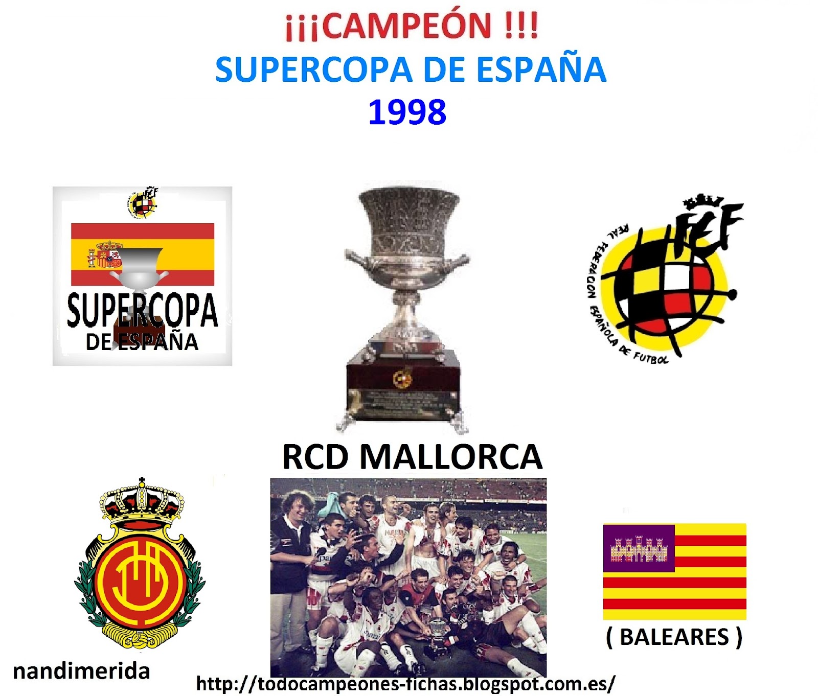 Aquella fue, además, la primera victoria ante el Barça en su estadio, porque aunque el Mallorca había ganado 1-3 en el Camp Nou en 1980, había sido ante el Barcelona Atlético. Luego llegarían más triunfos en el coliseo blaugrana, el último en el año 2008, pero el primero de todos fue el de agosto de 1998. Creo que todos recordamos las imágenes de los jugadores del Mallorca sobre el césped del Camp Nou levantando la Supercopa.