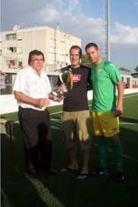 Destacamos el gran ambiente vivido en el campo y por supuesto la entrega del presidente de la Balear Miquel Bestard a los jugadores Tolo Amengual y Juanjo Domínguez del título de campeón de Liga de Primera Regional de la temporada pasada.