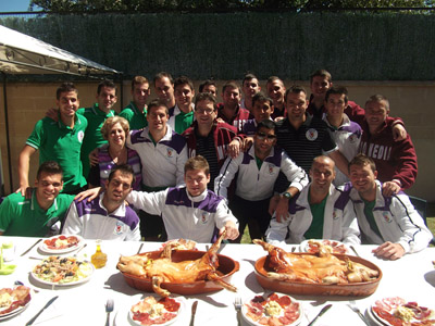 Además de lo puramente deportivo, la expedición aprovecha la concentración para estrechar los lazos que deben ser el gran baluarte del equipo una temporada más. El buen ambiente vuelve a ser clave una pretemporada más y así queda de manifiesto en estos días. Ayer el equipo hizo piña en casa de uno de los jugadores, Rubén Cornejo, que hizo de anfitrión en su casa invitando a toda la plantilla a disfrutar del típico cochinillo segoviano, una muestra más del buen compañerismo que reina en el grupo. La familia del jugador segoviano del Fisiomedia fue la encargada de preparar la comida aprovechando la visita del equipo a su tierra.