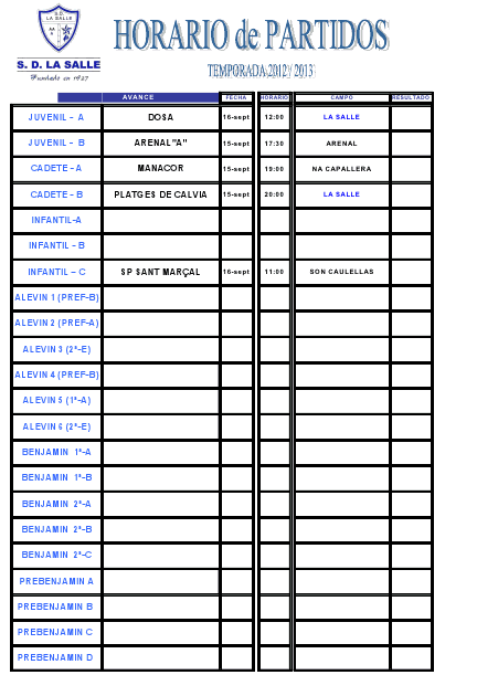 S.D. La Salle ; Horarios partidos de Liga de este fin de semana.(Resultados)