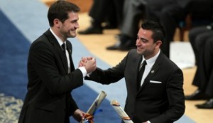 “Han conseguido los títulos más importantes con sus clubes y la selección española, son un ejemplo de juego limpio que es admirado por todos. Juntos han mostrado una actitud conciliadora que ha limado las tradicionales diferencias entre jugadores y aficiones”. Con estas palabras se presentó el galardón de Iker y Xavi, dos jugadores que han sabido olvidar los colores de sus equipos cuando se han reunido para llevar a la selección española hacia lo más alto.