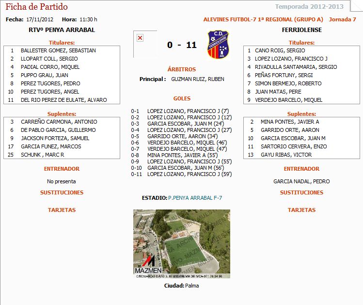 Alevin-F7 1ª Regional Grupo-A ; Rtv.Penya Arrabal-Ferriolense (0-11) Galeria de Fotos