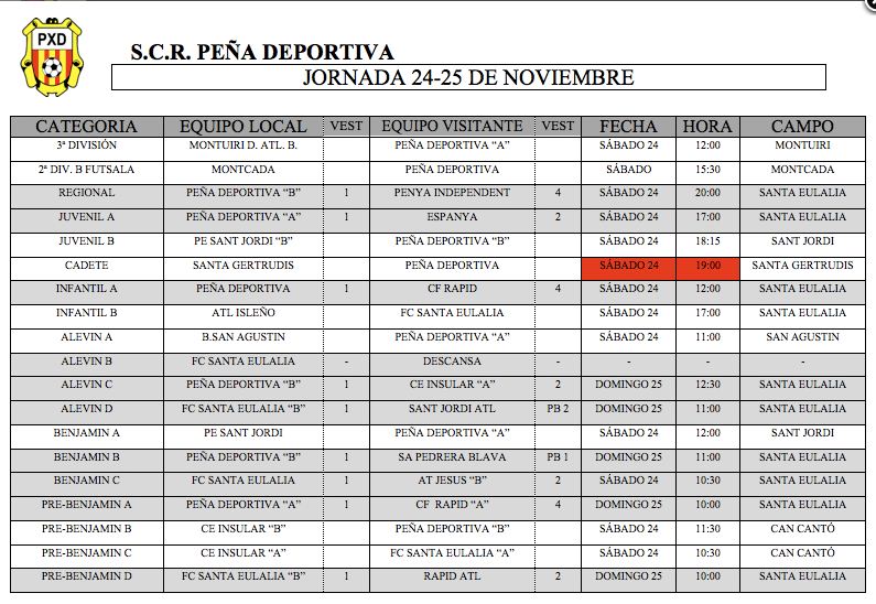De nuevo todos los horarios de os equipos de este club para este proxÃmo Fin de semana