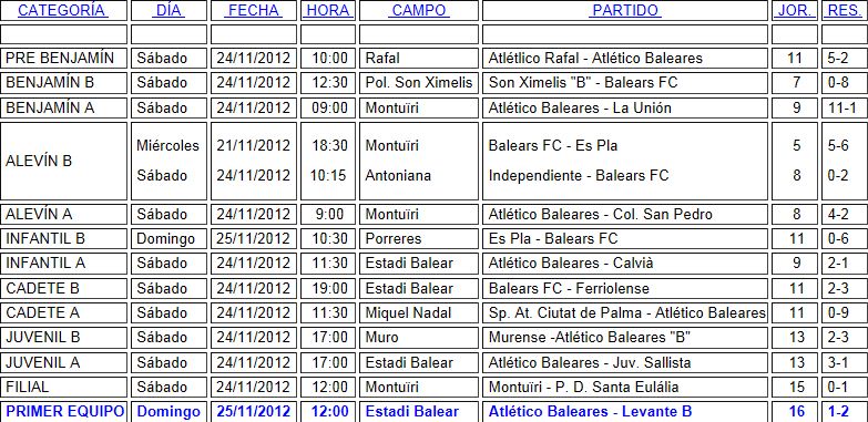 At.Baleares; Resultados Fin de Semana