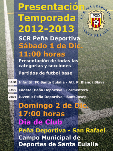 No os olvidéis de que este fin de semana tenemos la presentación de todas las secciones y categorÃas del Club! Los jugadores tienen que estar aquà a las 09:45, la presentación empezará a las 11:00. ¡Endavant peña!