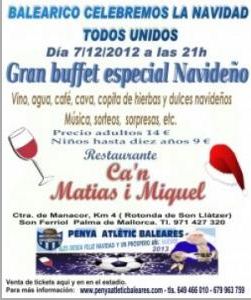 El At.Baleares hace publico la Cena de navidad que tendra lugar en C´an Matias i Miquel (informa sportsdecanostra.com)