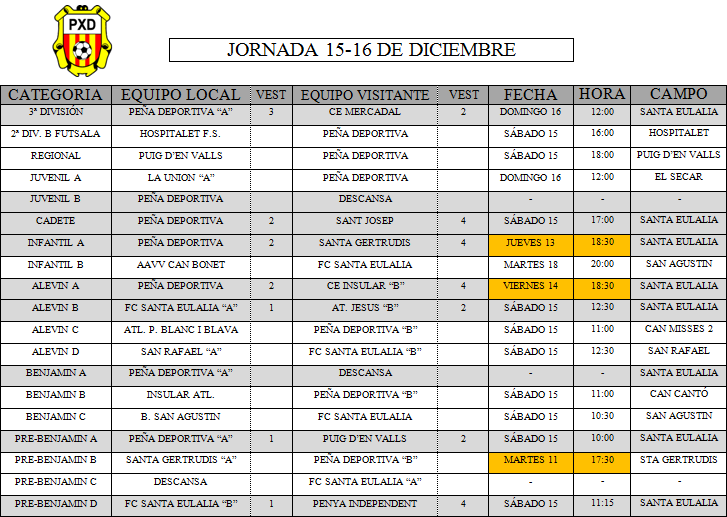Estos son los Horarios de los equipos de este club.
