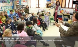 El president de la FFIB va donar una xarla l’Escola de Bunyola sobre futbol i esport.