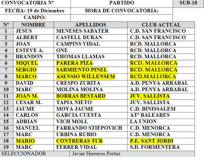 Convocatoria Selección Balear Sub-18