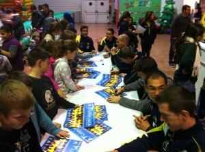 Los jugadores del Ushuaia Ibiza Voley de la Superliga española masculina de voleibol se han acercado esta tarde al recinto ferial de Eivissa para firmar autógrafos a la chiquillerÃa que acude a Diverespai. El club ha iniciado de esta manera una campaña de acercamiento y promoción de este deporte a poco más de dos semanas para el inicio de la Copa del Rey de este deporte, que se celebrará en Eivissa por primera vez en la historia.