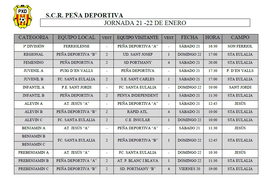 A destacar el encuentro que enfrentarĂĄ a nuestros benjamines B y C, el domingo 22 a las 12:45 en el Campo Municipal de Deportes de Santa Eulalia