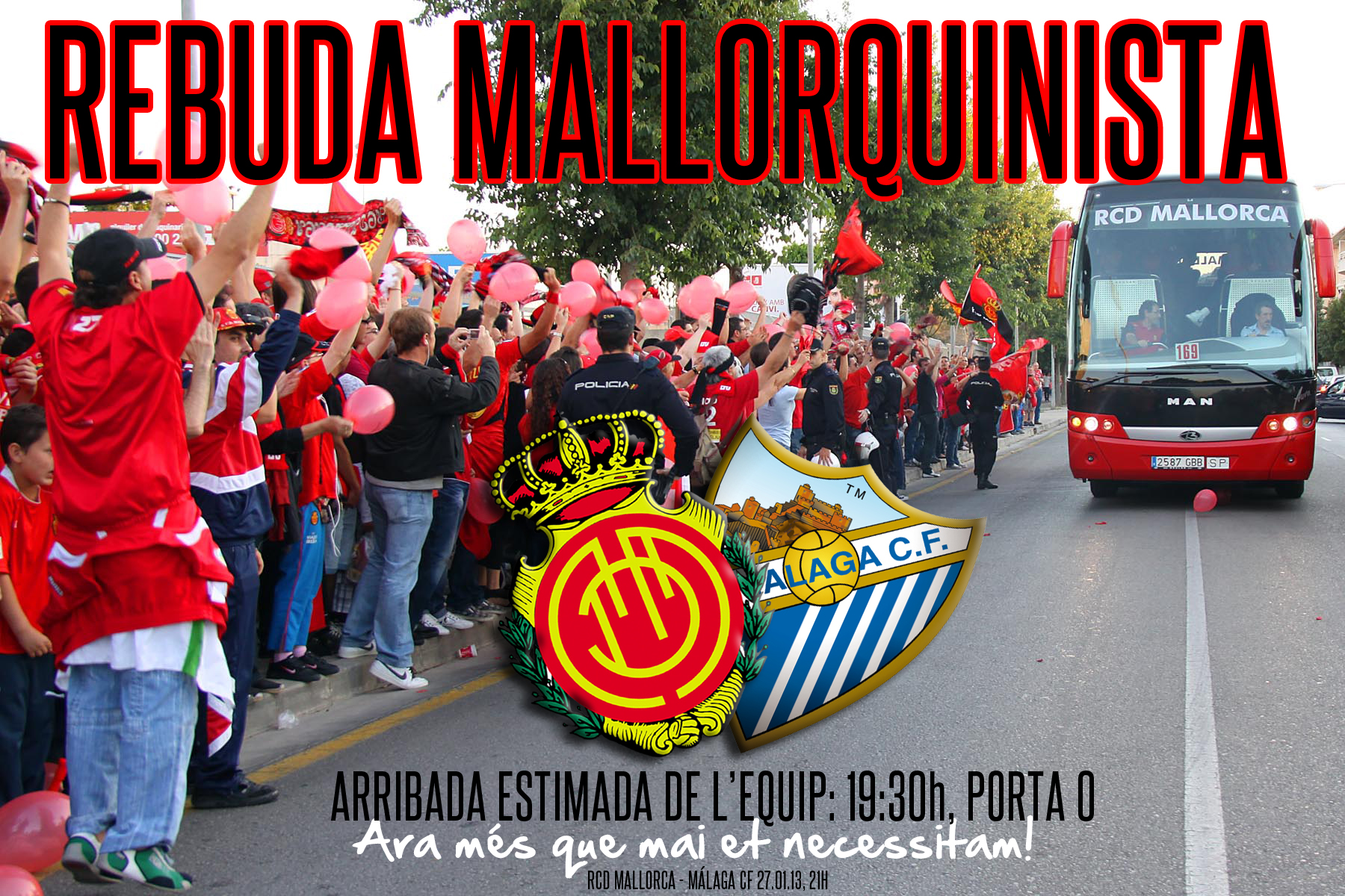 La Grada Jove mallorquinista y la Federació de Penyes mallorquinistes trabajan ya en el próximo encuentro liguero en el Iberostar Estadi, ante el Málaga CF. El objetivo no es otro que dispensar un gran recibimiento al equipo a su llegada al Iberostar Estadi y demostrarles asà que no están solos, que todos unidos conseguiremos el objetivo. El recibimiento estará acompañado además de un correfoc.