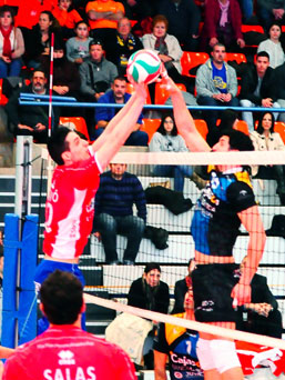 Ciudad del Medio Ambiente Soria Numancia se convirtió en el primer semifinalista en la XXXVIII Copa del Rey que ha comenzado esta tarde en el Pabellón Sa Blanca Dona de Ibiza al superar a Cajasol Juvasa por 3-1 (25-19, 23-25, 27-25, 25-23) en un emocionante choque repleto de igualdad, con desarrollos de set muy equilibrados y en el que el acierto en los momentos clave del bloqueo numantino y los primeros tiempos con Marc Altayó, autor de 20 puntos, resultó definitivo para la resolución del choque. Los hombres de Álvaro Martín lideraron el encuentro con un sólido bloqueo, el acierto en remate de Fran Ruiz (19 puntos y 6 bloqueos) y Alberto Salas y la superioridad en el centro de la red de sus centrales.