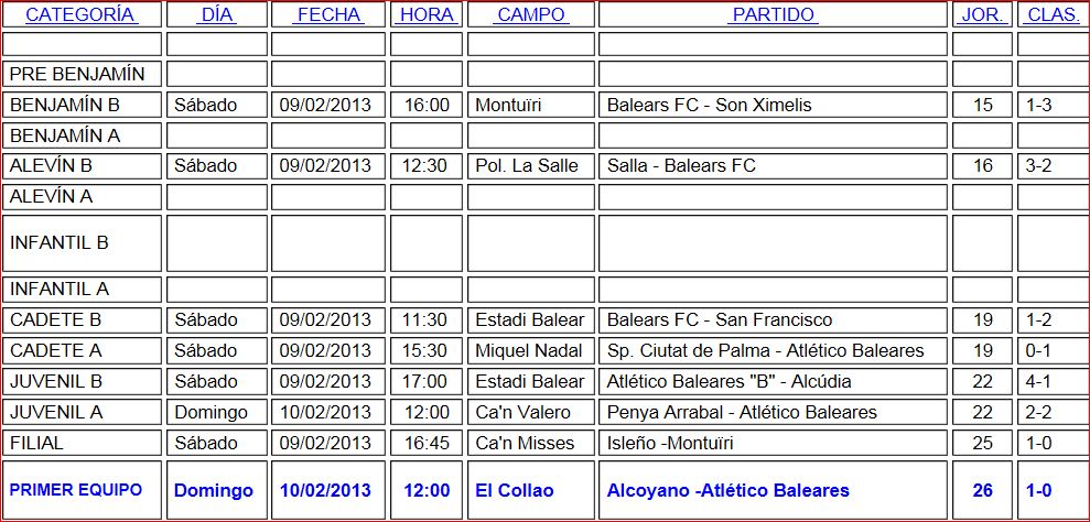 12 febrero 2013 | Por lorenzo | Categoria: Horarios y resultados