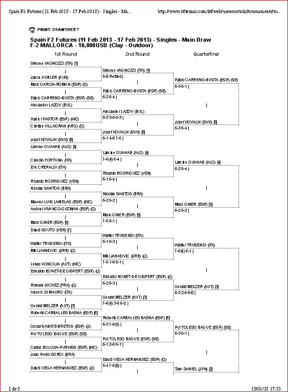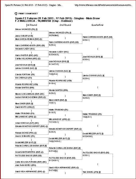 Jugaran las semifinales en duelo fraticida , los españoles PABLO CARREÑO Vs MARC GINER y la otra semifinal el Italiano WALTER TRUSENDI Vs el Japonés TARO DANIEL