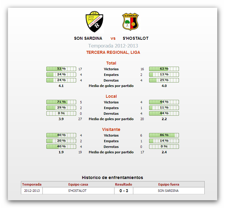 Atractivo partido el de mañana domingo, que enfrentará al 3º y 4º de la liga. Son Sardina no ha perdido ningún partido en casa (5 victorias y 2 empates); S’Hostalot no ha perdido ninguno fuera (6 victorias y 1 empate). El partido de la 1ª vuelta acabó con un 0 a 3. Podrá el S’Hostalot sacar los tres puntos y poner el gol average a su favor. Seguro que será un bonito partido y que lucharan por conseguirlo.