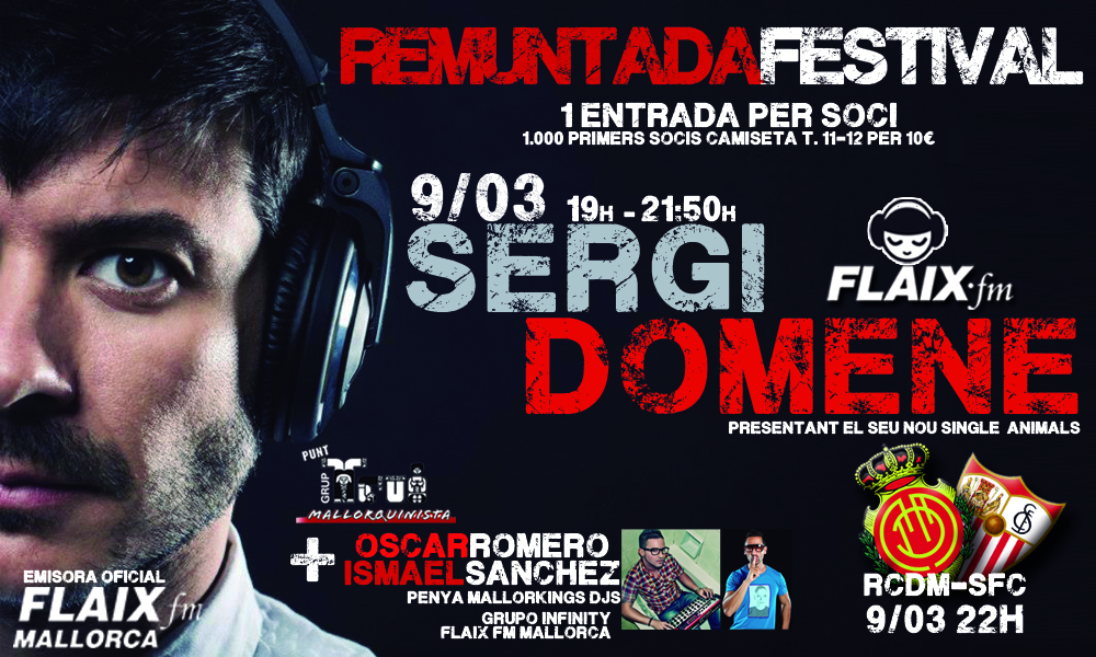 Éste sábado en el Punt Trui Mallorquinista contaremos con una fiesta dirigida, por horario, a los más jóvenes. Ya que el partido es a las 22h en sábado el Punt Trui ofrecerá a los aficionados más jóvenes un espectáculo diferente de la mano de la emisora dance de la isla, Flaix FM, con uno de los dj’s del momento en nuestro paÃs, Sergi Domene. Quien se ha convertido en uno de los grandes nombres nacionales en Ibiza, gracias a sus residencias en salas como Space Ibiza o Amnesia, colaborando con grandes marcas como Matinée o Pop Star, además Sergi reserva cada semana un espacio en la noche de los jueves para reencontrarse con su público más fiel en el club Cum Laude de Barcelona. Su carismática conexión con el público nace cada noche en las ondas de Swing Flaix, el programa estrella de Flaix FM que, protagonizado por la energÃa y profesionalidad de Sergi, se ha posicionado como uno de los mejores radio-shows nacionales.