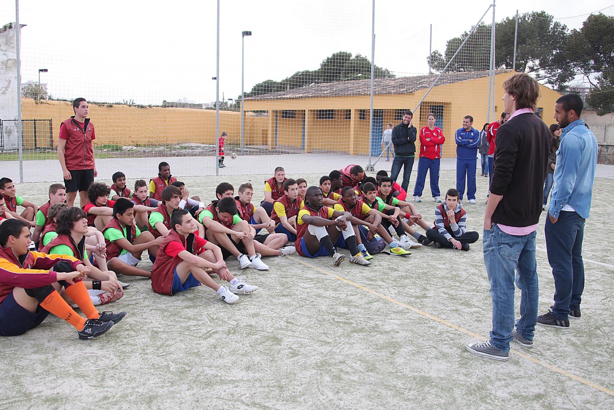 Pina y Tissone visitan las escuelas sociales de fútbol de la Fundació “Juguis on Juguis, Guanyes!”