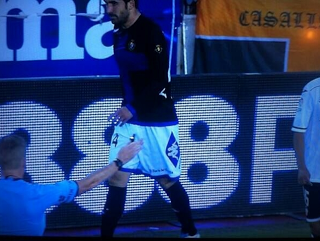 Ocurrió en los minutos finales del partido que disputaban Valencia y Real Valladolid. En una jugada cerca de la linea de banda, el colegiado decreta saque de banda a favor del Real Valladolid, como se puede ver en la imagen. El trencilla avisa a Balenziaga, jugador del Real Valladolid, para que sacase rápido y no perdiese tiempo y este le dice que va a sacar su compañero, Óscar.