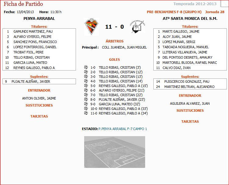 Prebenjamines Futbol-8 Grupo H ; Penya Arrabal-Sta.Monica (11-0)
