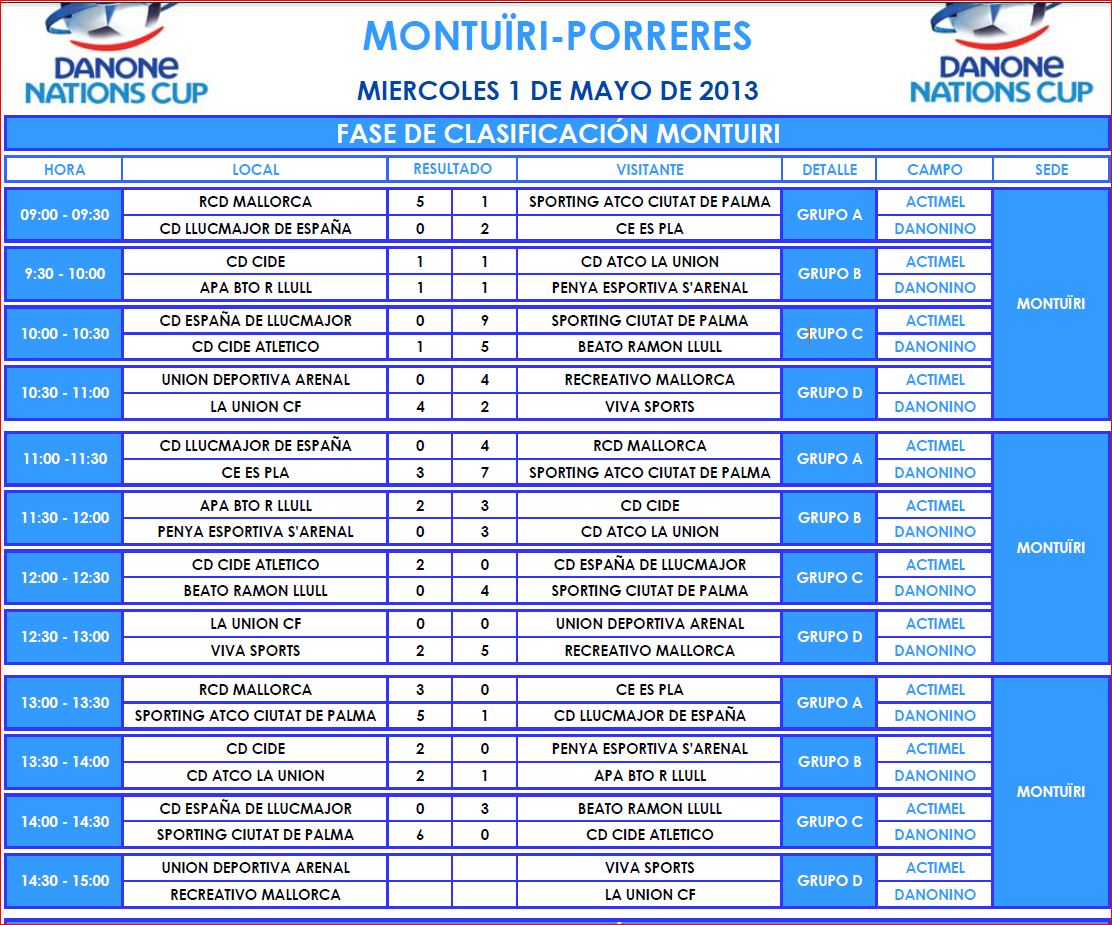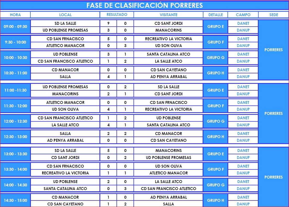 Estos son los resultados de toda la Jornada de los partidos disputados en Montuiri y Porreres, faltan anotar las semifinales y final que encontrareis en otro articulo