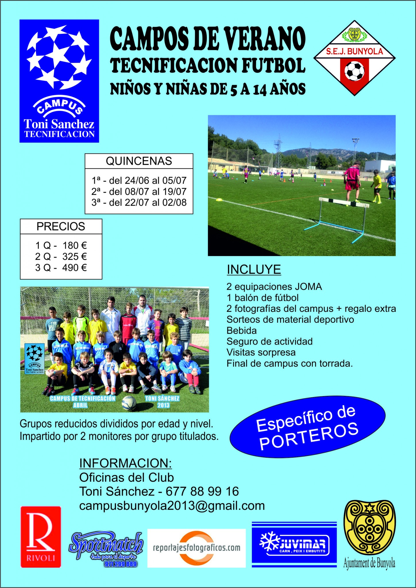 El Campus de Tecnificación coordinado por Toni Sanchez, se distribuirá en 3  quincenas, realizándose en las instalaciones del S.E.J. Bunyola. Está dirigido para los niños nacidos entre 1999 y 2007 (ambos inclusive)