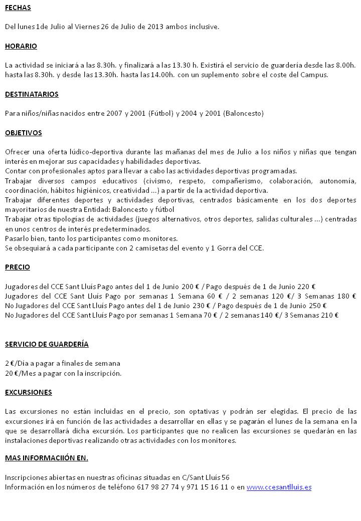 CCE Sant LluÃs ; El Campus 2013 ja es aquÃ! Fútbol y Basket