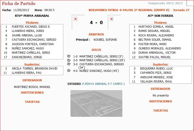 Benjamines Fútbol 8 Segunda Regional Grupo-D ; Rtv.Penya Arrabal-At.S.Ferriol (4-0)