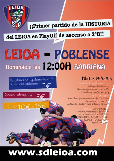 Ascenso a Segunda-B ; SD LEIOA – UD POBLENSE (Domingo 12,00 Hrs)