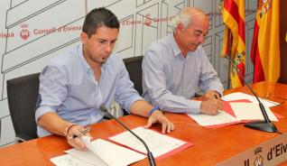 2803El conseller de deportes del consell de Ibiza, Rafa Triguero y el delegado insular de fútbol, Vicente Bufí, firmaron ayer el convenio de colaboración, en el que las competiciones de categorías inferiores hasta los 12 años (prebenjamines, benjamines y alevines) incorporarán para la campaña 2013-14 las recomendaciones que hace el Código Ético Deportivo, que ha elaborado el Consell para favorecer la parte educativa del deporte y reducir el aspecto competitivo de la base. Los árbitros cerrarán las actas de los partidos cuando haya una diferencia superior a ocho goles entre los dos equipos. r. d. eivissa