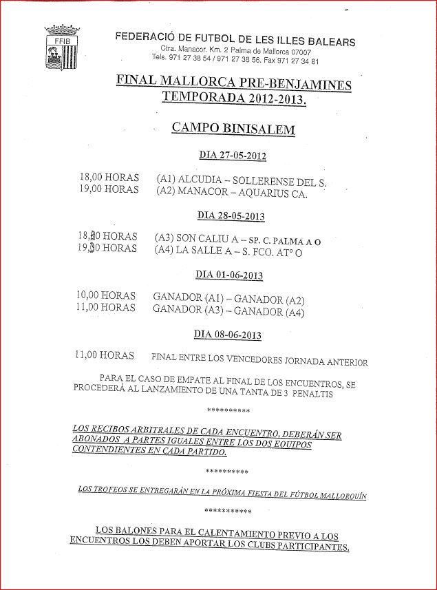 Fase Final Mallorca Pre-Benjamines (Binisalem) ; Manacor y Sporting C.Palma a la Final