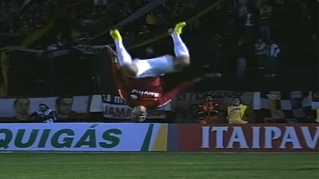 1373554160580Maurides, el jugador brasileño del Internacional, se ha convertido en el protagonista de la jornada deportiva, y no precisamente por los mejores motivos. El futbolista sufrió un esguince en la rodilla derecha durante la celebración de un gol, el primero que marcaba con su equipo, que festejó dando un salto mortal hacia atrás.