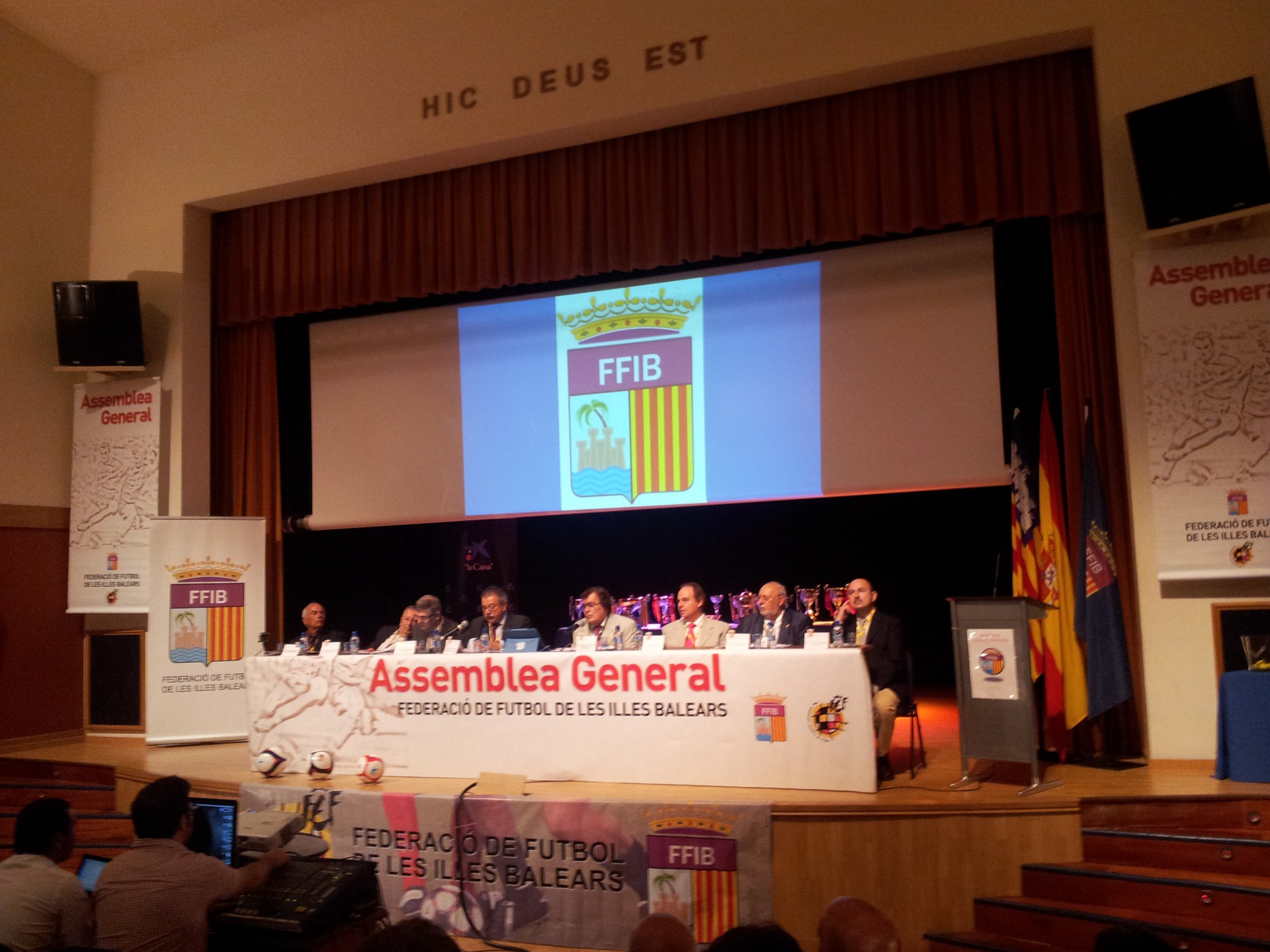 Con la presencia de 97 AsambleÃstas por parte de los clubes, asi como la Junta de Gobierno de la FFIB, e invitados se ha llevado acabo una nueva Asamblea  que pone punto y Final a esta temporada pasada y da inicio a la proxima 2013/2014.Despues de diferentes parlamentos de las Autoridades polÃticas y del Director de Ib3TV se ha dado inicio a la Asamblea con los diferentes puntos previstos en el orden del dia.