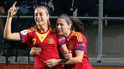 El primer gol de España no se hizo esperar y, antes de cumplir el primer cuarto de hora, Vero Boquete hacía el 1-0 tras un buen pase de Adriana. Apenas un par de minutos más tarde, las jugadoras de Ignacio Quereda gozaron de una triple ocasión, primero con un disparo de Adriana que rechaza la portera y, tras un buen regate, Alexia probó fortuna con dos disparos que fueron repelidos por Todua y, aunque Jenni mandaba el balón al fondo de la red, la jugada estaba invalidada por fuera de juego.