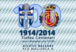Avui a les 19:30 h final del «I Torneig Centenari» a Binissalem. Atlètic Balears – Mallorca «B» al «Miquel Pons». L’entrada és gratuïta! Apunta’t!!