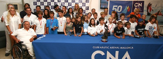 La entrega de premios tuvo lugar a las 19.00 horas en el Club Nà utic S`Arenal. El momento más emotivo se vivió cuando VÃctor Valls y Pau Capó, los regatistas más jóvenes de la clase 420, recogieron el premio Memorial Ricardo Arnau de manos del padre de este joven deportista del CN Arenal fallecido en accidente.