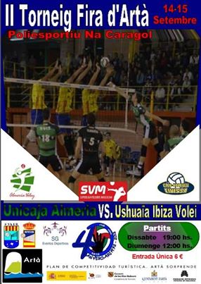 hoy Sabado a las 19:00 hs. en el Polideportivo de Artà podremos disputar de uno de los mejores encuentros de Superliga Masculina de este año Unicaja Almeria vs. Ushuaia Ibiza, se enfrentaran a doble partido repitiendo el Domingo a las 12:00 hs., los espero por Artà .