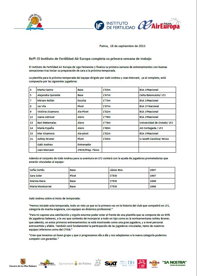 Nota de prensa – Liga Femenina 2 Air Europa-BHS; Primera semana de entrenamientos‏