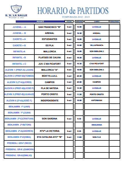 Estos son los horarios de los diferentes equipos del cub para este fin de semana.