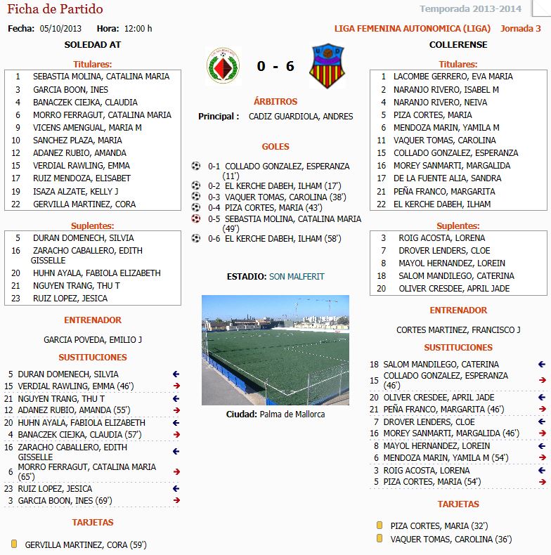 Liga Femenina Autonomica ; CD.Soledad At.-U.D.Collerense (0-6)