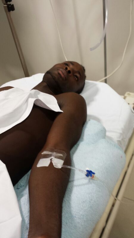 En el minuto 30 una fortuita, pero desgraciada caída del delantero centro Iyayi, acabo con un fuerte golpe en la zona lumbar que por momentos empeoró y se le inflamó de tal forma que hizo temer lo peor, por lo que tuvo que ser trasladado en ambulancia al centro hospitalario donde quedó ingresado en observación.