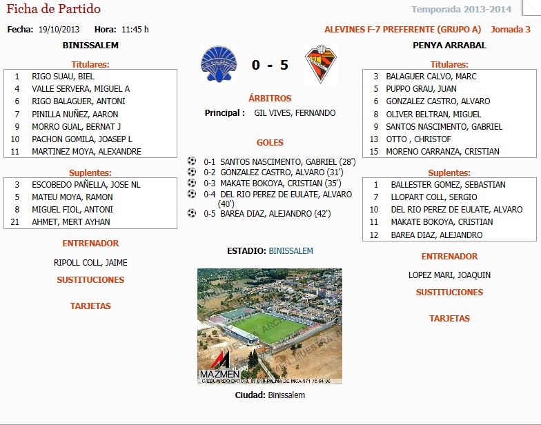Alevin Preferente; Binisalem -Penya Arrabal (0-5)