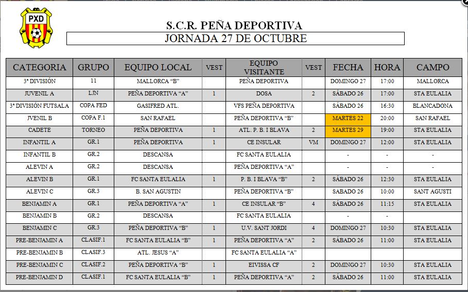 Peña DeportivaEstos son los Horarios de los equipos de este club para este proxímo Fin de Semana.