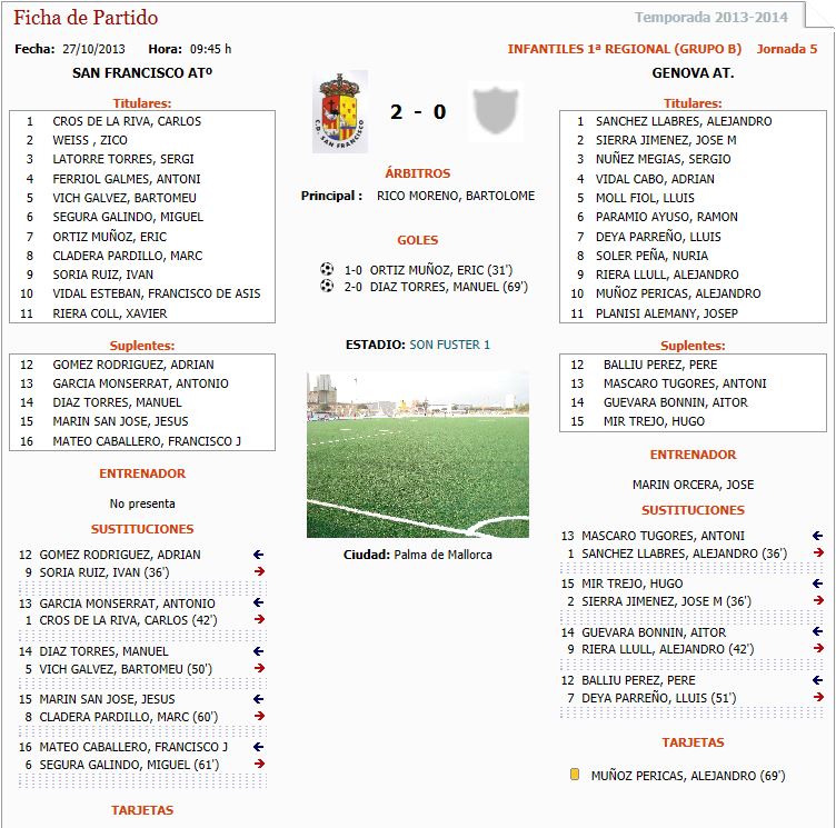 San Francisco Atº- Genova Atº. Infantiles 1ª .Reg.Grupo «B» (2-0)