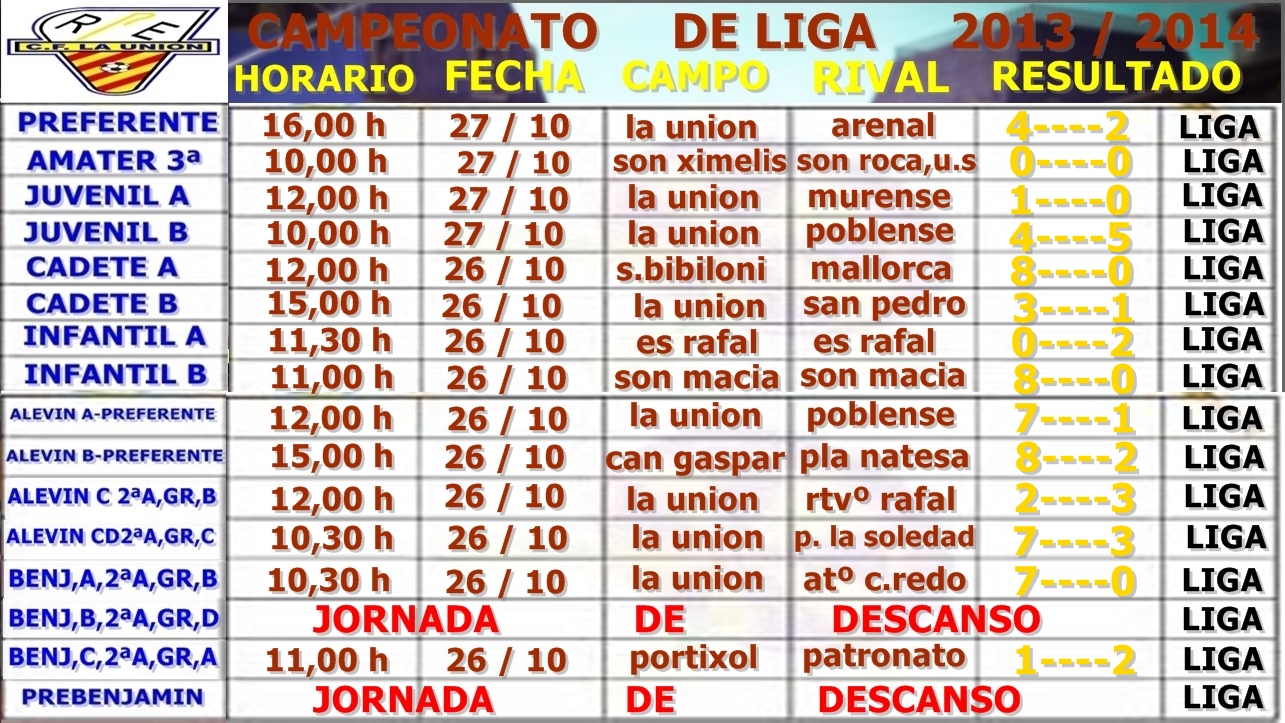 la unionEstos son los resultados del fin de semana del CF. La Unión , gentileza de Jose luis Rendón