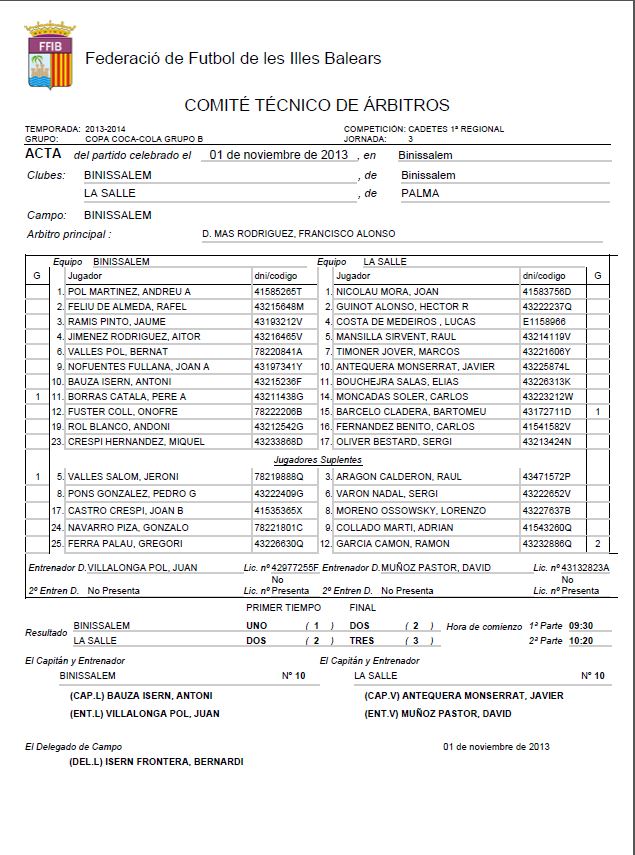 Cadetes Primera Regional Copa Coca Cola Grupo-B ; Binisalem- La Salle (2-3) incidentes al Final