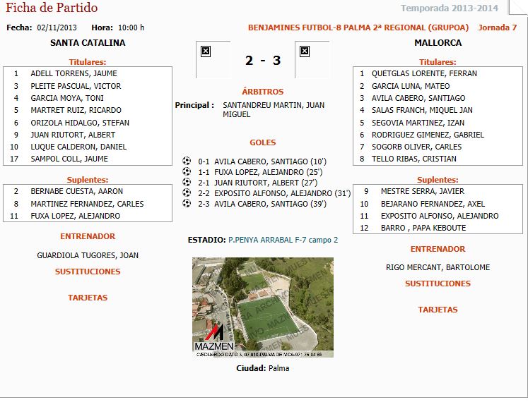 Benjamines Fútbol 8 2ª Regional Grupo-A ; Sta.Catalina-Mallorca (2-3)