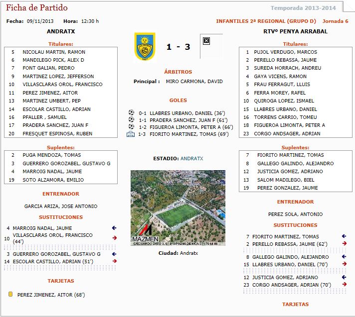 Infantiles 2ª Regional Grupo-D ; Andratx-Rtv.Penya Arrabal (1-3)
