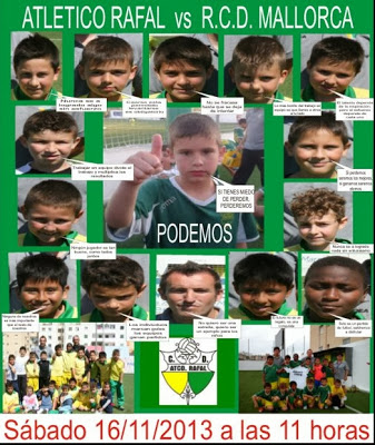 El BenjamÃn A que este sábado juega contra el RCD Mallorca «B» a las 11 horas en el Rafal, han hecho un póster que han colgado en varios rincones del club.  Entre todas las frases de nuestros jugadores destacamos «solo es un partido de fútbol, saldremos a disfrutar», asà entendemos que debe ser.