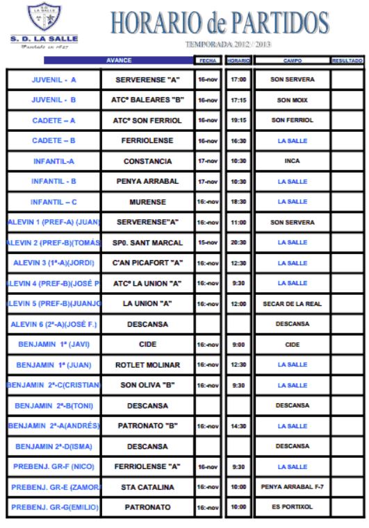 la salleEstos son los Horarios de los diferentes equipos del club para este proxĂ­mo fin de semana